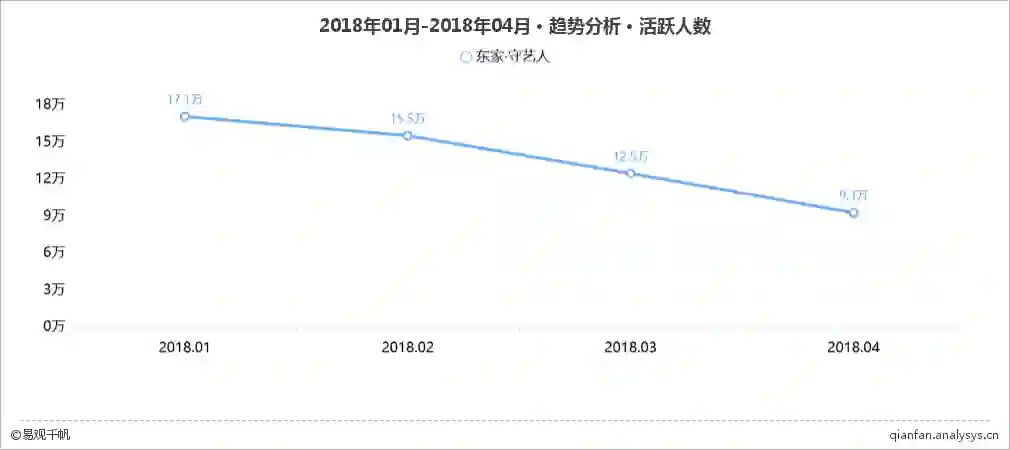 进入2018年以来,东家APP的每月活跃人数持续走低,在4月份甚至跌至10万以下;4月启动次数只有46.4万次,比年初的87.6万次减少将近一半。在用户新鲜感渐失、文创行业竞争加剧的危机中,东家开始将目光投向其他领域,在线上线下寻找合作者以期扭转颓势。