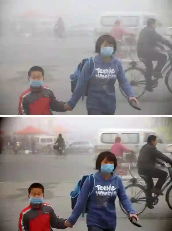 根据何恺明算法处理的图像,上为原图下为处理后