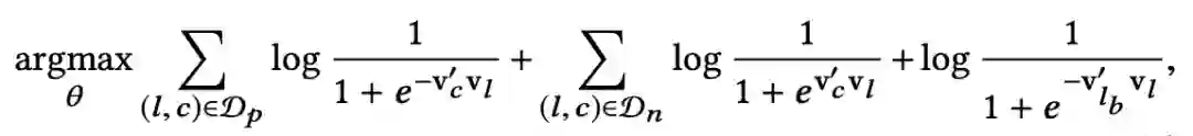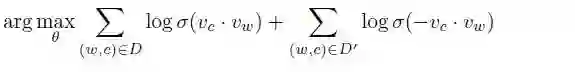 在采用 negative sampling 的训练方式之后,objective 转换成了如下形式: