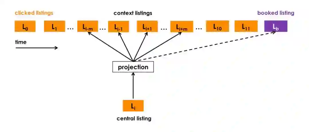 为了捕捉到用户 short term 以及 long term 的兴趣,Airbnb 并没有把 user history 的 clicked listing ids 或者 booked listing ids 直接输入 ranking model,而是先对 user 和 listing 进行了embedding,进而利用 embedding 的结果构建出诸多 feature,作为 ranking model 的输入。这篇文章的核心内容就是介绍如何生成 listing 和 user 的embedding。
