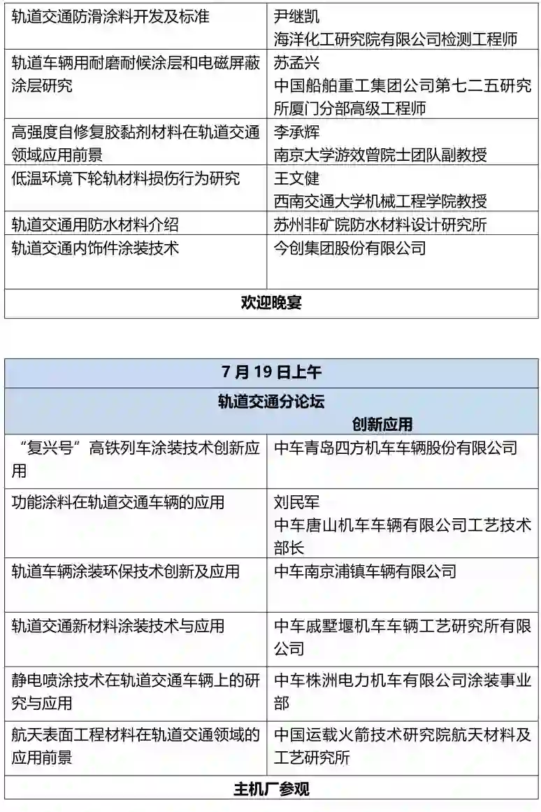 论坛聚焦轨道交通和汽车两大领域,邀请轨道交通车辆和汽车主机厂、零部件涂装负责人、涂装设备企业、涂料和原材料企业、测试及模拟软件供应商、测试实验设备供应商、科研院所和高校等共同参与,分享国内轨交车辆和汽车行业现状;探讨绿色环保涂料涂装技术;迎接轻量化材料给涂料、涂装和防腐老化带来的新挑战;宣传贯彻新的行业标准。