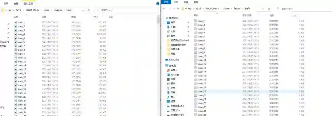标注完成之后你会得到一系列的txt文件,这里的txt文件就是目标检测的标注文件,其中txt文件和图片文件的名称是一一对应的,如下图所示: