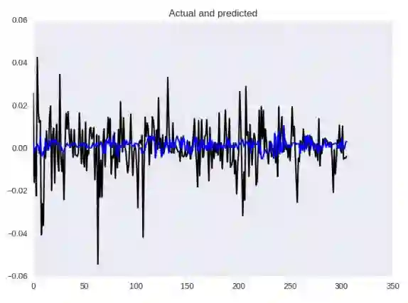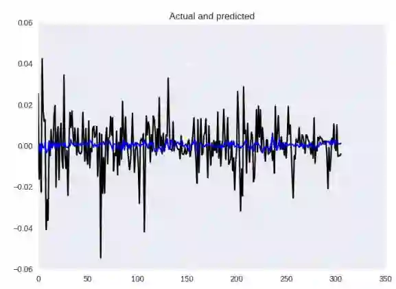 总体上看起来并不糟糕! 当然,有些跳跃预计太晚了,不过,捕获依赖关系的能力是很好的! 在指标方面,MSE为2.5426229985e-05,MAE为0.0037,MAPE为38%。