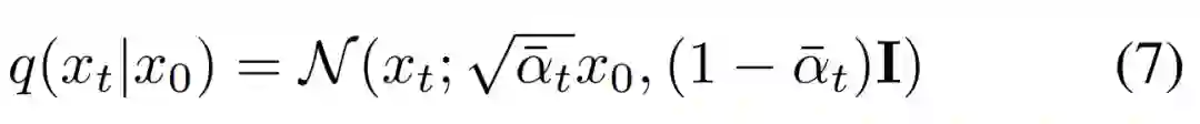为了训练 DDPM,研究者需要一个样本 x_t 以及相应的用于将 x_0 转换为 x_t 的噪声。最后,他们可以对公式 (1) 进行重写,作为一个单步执行,具体如下公式 (7) 所示