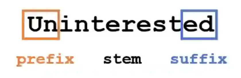 假设我们的目标是收集关于这个词的一些信息(表征它的情感,找到它的定义等)。利用我们的语言学知识可以将这个词分解成 3 个部分。