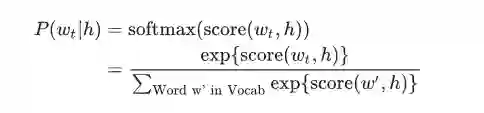 其中 score(wt, h) 计算目标词 wt 与上下文 h 的相容性(常用点积)。