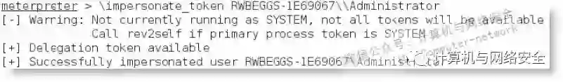 当在incognito中调用mpersonate_token命令时(如下图所示),注意这两个反斜杠在命令中是必要的。