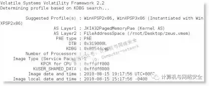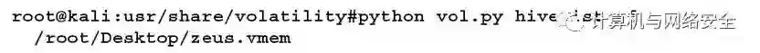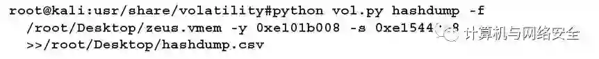 对一个被恶意软件Zeus感染的系统中的样本图片(https://code.google.com/p/volatility/wiki/SampleMemoryImages),我们将用Volatility框架来获取加密的LanMan口令散列值。
