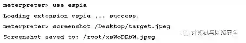 meterpreter还有一些有用的、支持复杂功能的库。例如,espia库支持通过如下命令对入侵系统进行截图:
