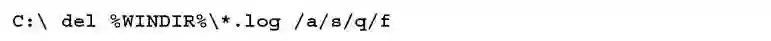 /a选项直接删除所有日志,/s选项删除包括所有子文件夹的文件。/q选项禁用所有的查询,这些查询要求有一个yes或者no的回应,/f选项强行删除文件,使得恢复更加困难。