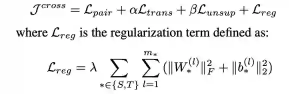 最后整个目标函数就是前边几项加起来加上一个正则项。这篇文章的优点是本身模型就融合了一个自编码器的模型进去(上图左边),这样本身就有一个半监督的学习(当然可能换成一个 Semi-VAE 可能效果更好些),又加上了领域适应。