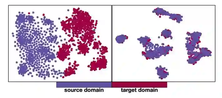 注意,这里的拉近不是任意点的拉近,而是源领域与目标领域对应类别数据的拉近,也就是拉近后源数据集与目标数据集仍然保持着自己内部的结构。