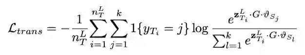 接下来是一个转移损失,也就是将目标数据集中的数据通过映射方程 G 映射到源数据集,用源数据集的分类器进行分类,计算损失。这么做的目的是通过知识更加丰富的源数据集分类器去帮助更好的区别目标数据集中的特征。