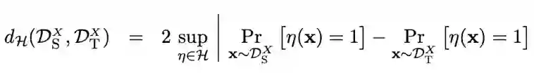 从上述公式可以看出,H- 散度的提供了一种量化描述不同领域差异的方法,即用其中一个领域的数据训练出来的分类器,在两个领域上预测结果,其结果的差异作为这两个领域差异的上界(Upper Bound)。
