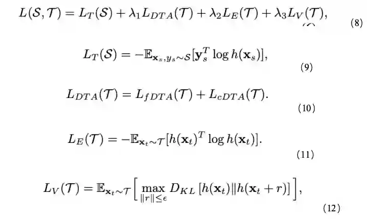 整体上和我们一开始的所说模板目标函数的公式 (4) 比较类似,(9) 是对于源数据集的交叉熵损失,(10) 是这篇论文的核心观点,通过对抗训练,使得分类器在目标领域产生更加具有鲁棒性和一致性的结果。