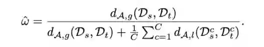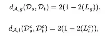 接下来分析一下动态对抗因子(dynamic adversarial factor)的计算,首先定义全局 A- 距离(global A-distance)和局部 A- 距离(local A-distance)。