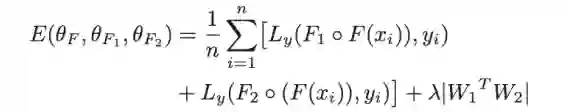 (Ben-David et al., 2010) 证明了 PAD(proxy A-distance)其实就是 H- 散度的近似值。那么,我们要解决的模型在目标数据集上误差最小化的问题,就被转换成了使源-目标数据集判别器损失最大化的问题了。