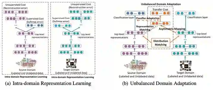 整体来看,整个领域适应问题都是建立在 (Ben-David et al., 2010) 理论上,对我们开始模版模型(公式(1)到公式(3))的不同部分进行不同的修改以提交效果的。有兴趣的读者可以找其中感兴趣的文章进行阅读实验。