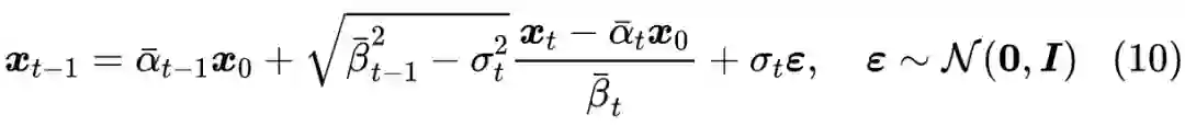 上面两式结合,就是最一般的主流扩散模型框架的反向过程,其中 DDPM 取了