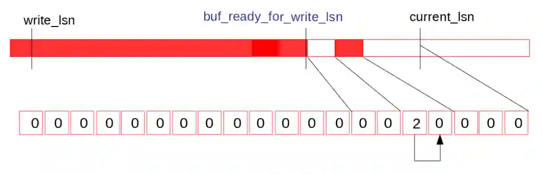 因此提升当前的buf_ready_for_write_lsn,并将log.recent_written的tail位置向前滑动,之后的位置清零,供之后循环复用: