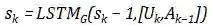 生成器的模型如上图所示,Agent使用一个LSTM来进行序列建模。在每轮对话中,用户的输入和系统上一轮的输出首先被编码成向量表示,第k轮对话系统的隐层状态就可以更新为: