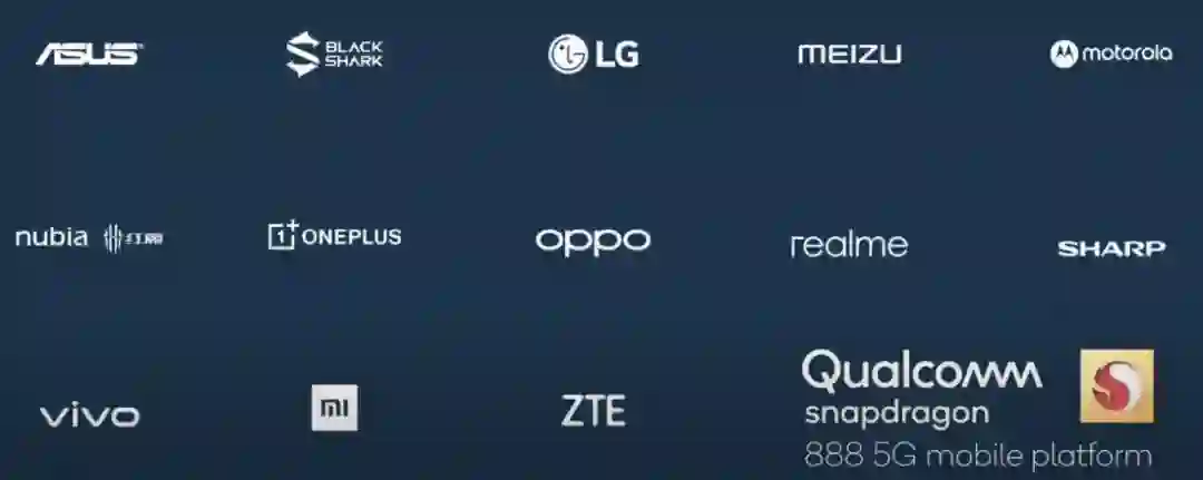 最后,高通宣布了将搭载骁龙 888 的厂商,包括华硕、黑鲨、LG、魅族、摩托罗拉、夏普、努比亚、OnePlus、OPPO、realme、VIVO、小米、联想、中兴等安卓厂商。值得注意的是,