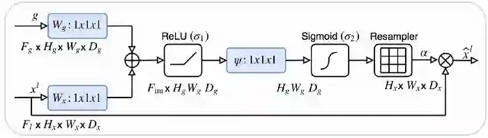 将注意力分布乘上跳转连接特征图,只保留重要的部分。这种注意力分布是从所谓的query(输入)和value(跳跃连接)中提取出来的。注意力操作允许有选择地选择包含在值中的信息。此选择基于query。
