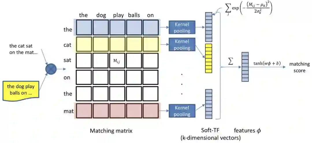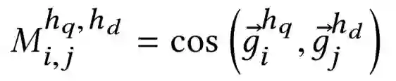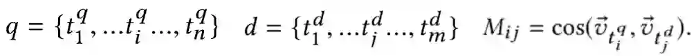 前一步得到query中的term,以及在doc中对应的query-centric contexts后,需要进行匹配得到交互矩阵。对每个query中的第i个term,以及query-centric contexts中的第j个term,用s