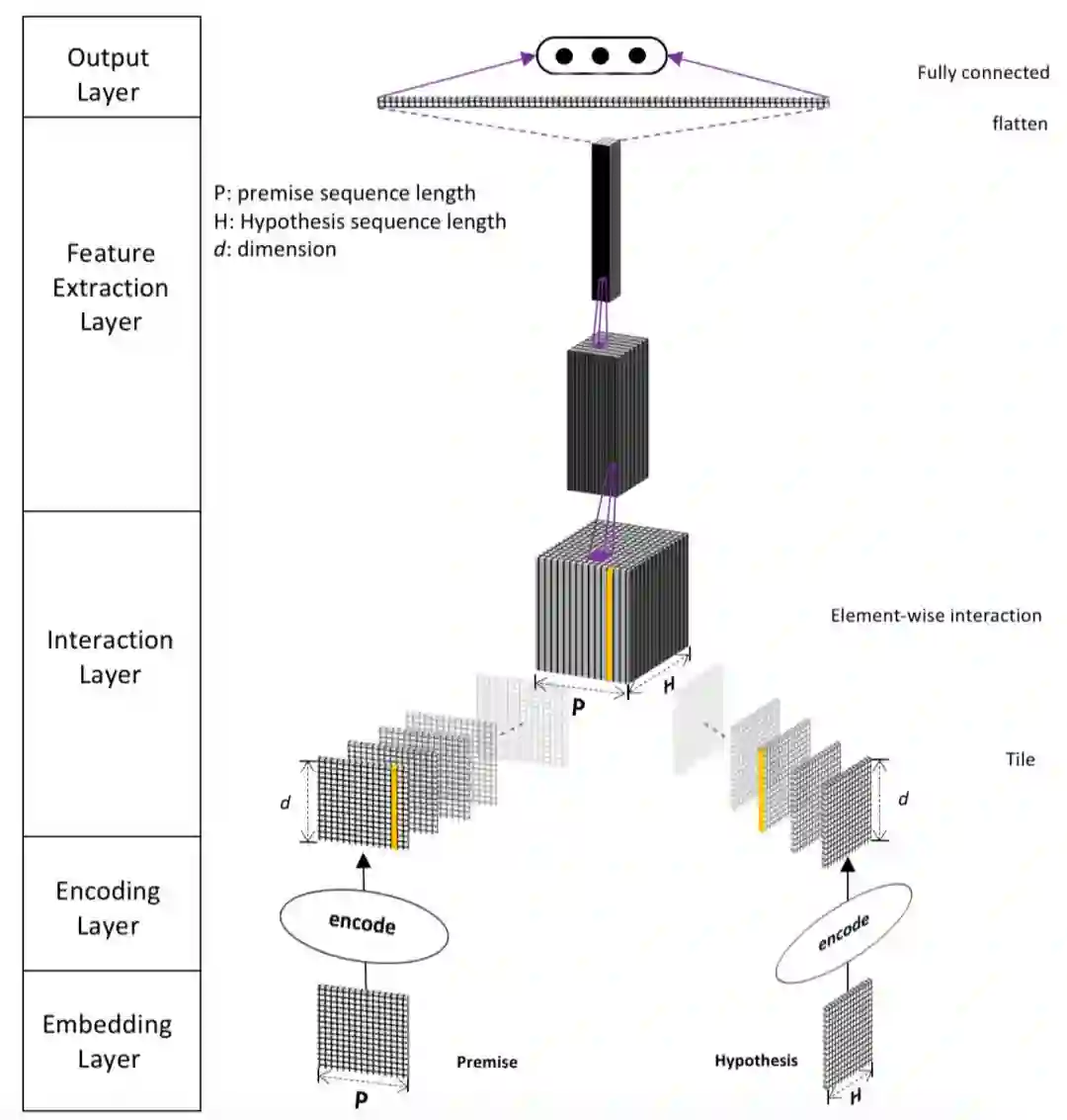 在embedding层之后,对每个sentence使用的是MLP网络,经典的隐层参数是300->300>128,也就是说最后,每个句子都将表示成一个128维度的向量。
