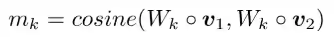 在原始的DSSM模型使用的是cosine作为两个向量的匹配分数: