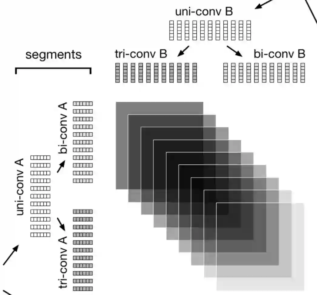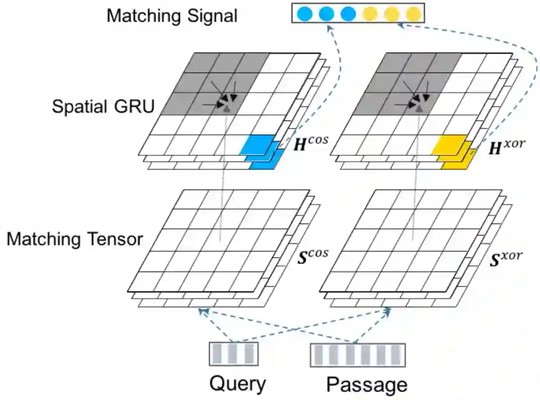 来表示,和MatchPyramid模型一样,文中使用了indicator和cosine两种方法,indicator相当于是精确匹配,只有query的第i个term和doc的第j个term完全一致才s