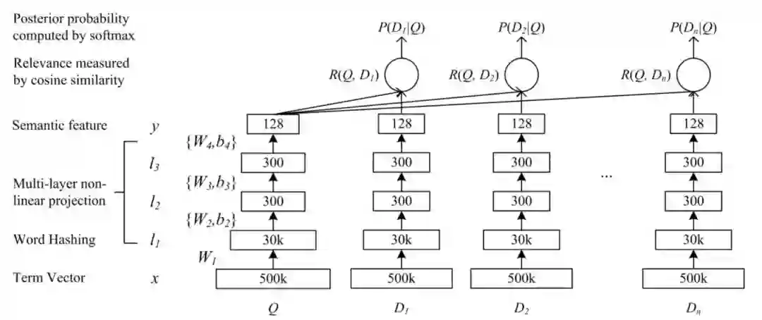 5. [DSSM] Huang P S, He X, Gao J, et al. Learning deep structured semantic models for web search using clickthrough data[C]//Proceedings of the 22nd ACM international conference on Conference on information & knowledge management. ACM, 2013: 2333-2338.