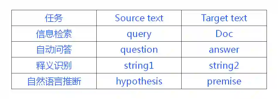 由于query和doc本身都是文本表示,所以本质上来说,这篇文章要讲的东西也是文本的深度匹配模型。大部分自然语言处理的任务基本都可以抽象成文本匹配的任务。