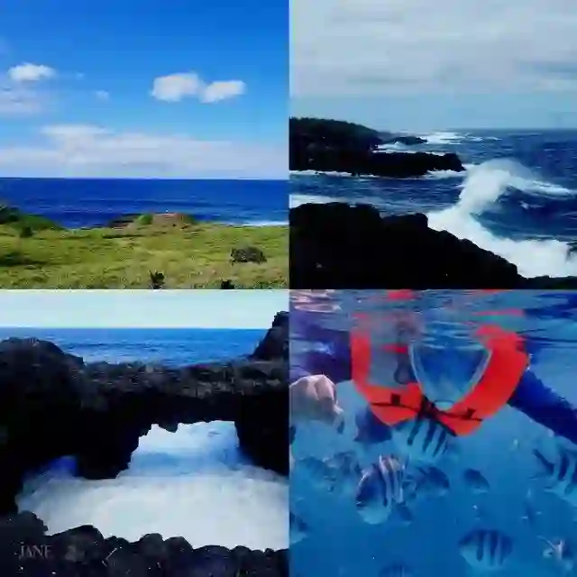 要看海豚需要早起,得亏我们住的近,早上可以多睡一会。想要看海豚真的不容易,快艇在海面上寻找海豚经常出没的海域,你需要提前穿好救生衣,带好呼吸管,船长说跳就要立刻跳海,然后看向海底,水性好的可以追赶,不过海豚速度很快,可能犹豫一下就没影了。总共三次跳海机会,我很幸运的在第二次跳海中看到还拍到了海豚(下图右下)。这项活动还是挺有风险的,海面浪大且比较深,需要会游泳且有一定体力,船长只负责找海豚,自己负责自身安全。当然也可以选择不下海,在船上看海豚跃出水面的瞬间。