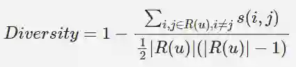 用于衡量每次推荐里面的推送的物品占所有可能性的比率,多样性越大,每次推荐的物品越丰富。