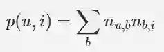 对于上面算法,用户 u 对于物品 i 的兴趣公式如上:
