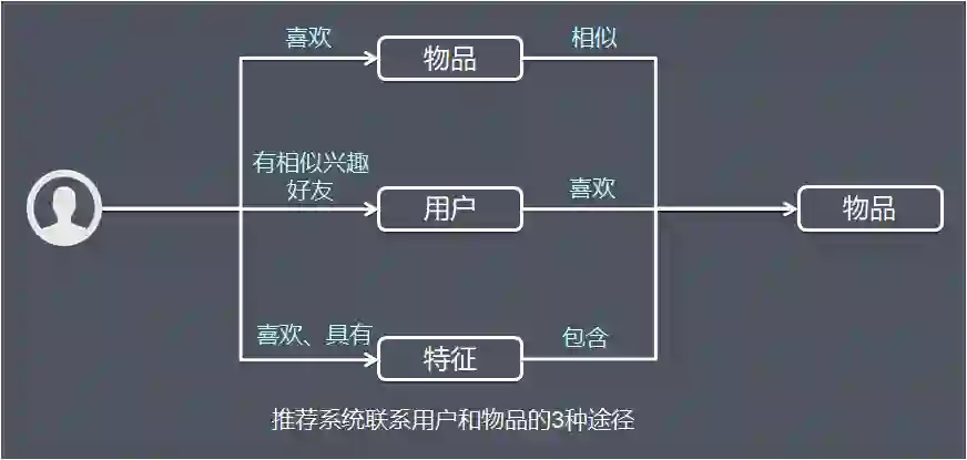 再次回顾一下上面提到的推荐系统联系用户和物品的 3 种途径。