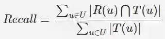用于度量有多个正例被分为正例,这里是正确推荐的数量占测试集合上用户行为列表的比例。