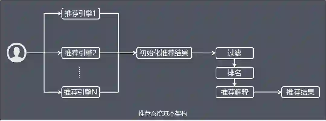 因此,推荐系统需要由多个推荐引擎组成,每个推荐引擎负责一类特征和一种任务,而推荐系统的任务只是将推荐引擎的结果按照一定权重或者优先级合并、排序然后返回。