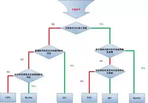 如果将开源协议具体用途的决策点进行分类,那么其导图如下: