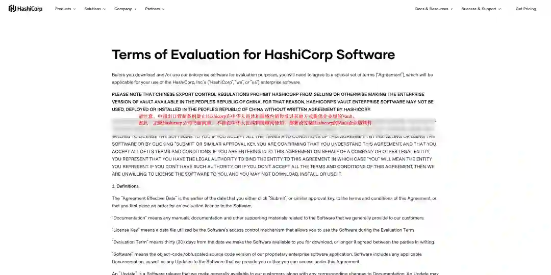 这已经不是开源社区与中国的第一次碰撞了,前阵子,知名开源云服务提供商HashiCorp表示:不允许中国境内使用、部署和安装该企业旗下的“企业版”产品和软件。