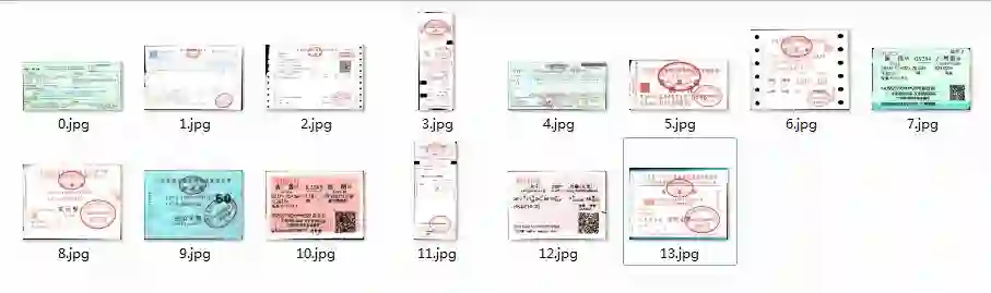 先分析任务和观察数据。我们这次的分类任务是票据分类,现在我们手头上的票据种类一共有14种,我们的任务就是训练一个模型将他们一一分类。先看看票据的图像吧。
