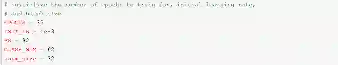 然后设定一些参数,比如图片归一化尺寸为64*64,训练35个epoches。设定完参数后我们开始训练。