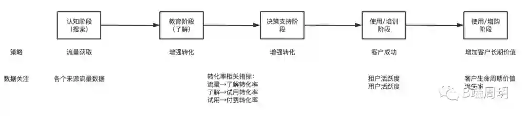 制定增长策略的第一步,是需要先分析你的SaaS产品用户旅程是怎样的,后续再根据实际情况/数据分析每一个阶段如何进行优化。