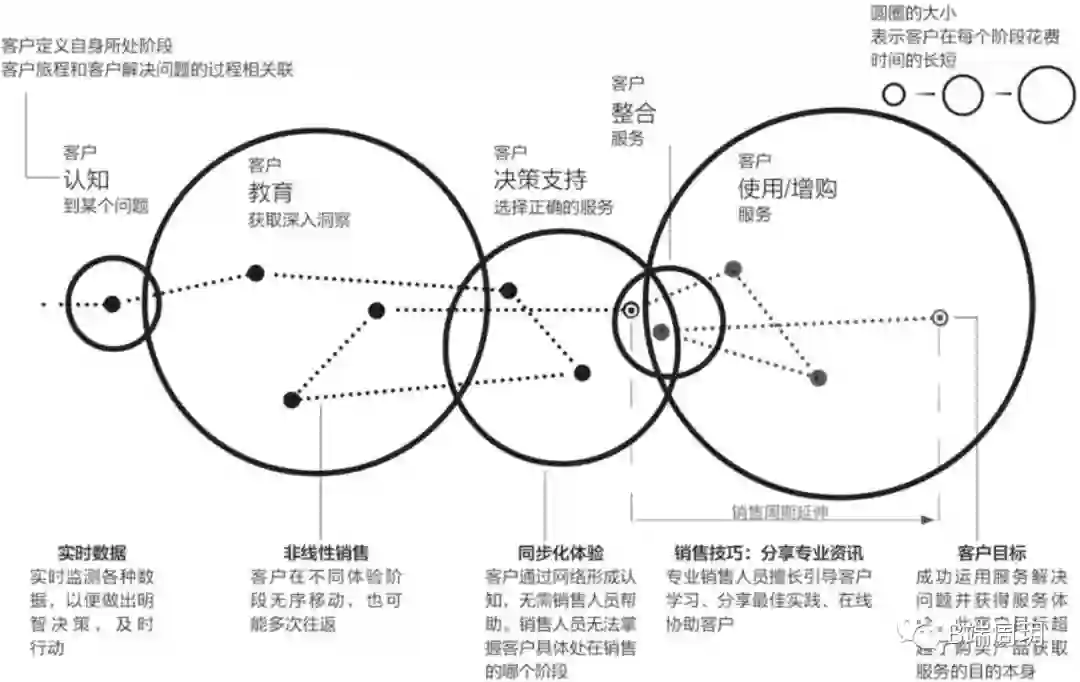 该图为《硅谷蓝图》中以客户为中心的销售模式,对于很多SaaS产品都很适用: