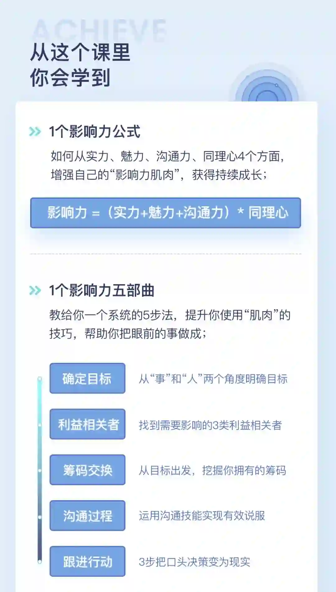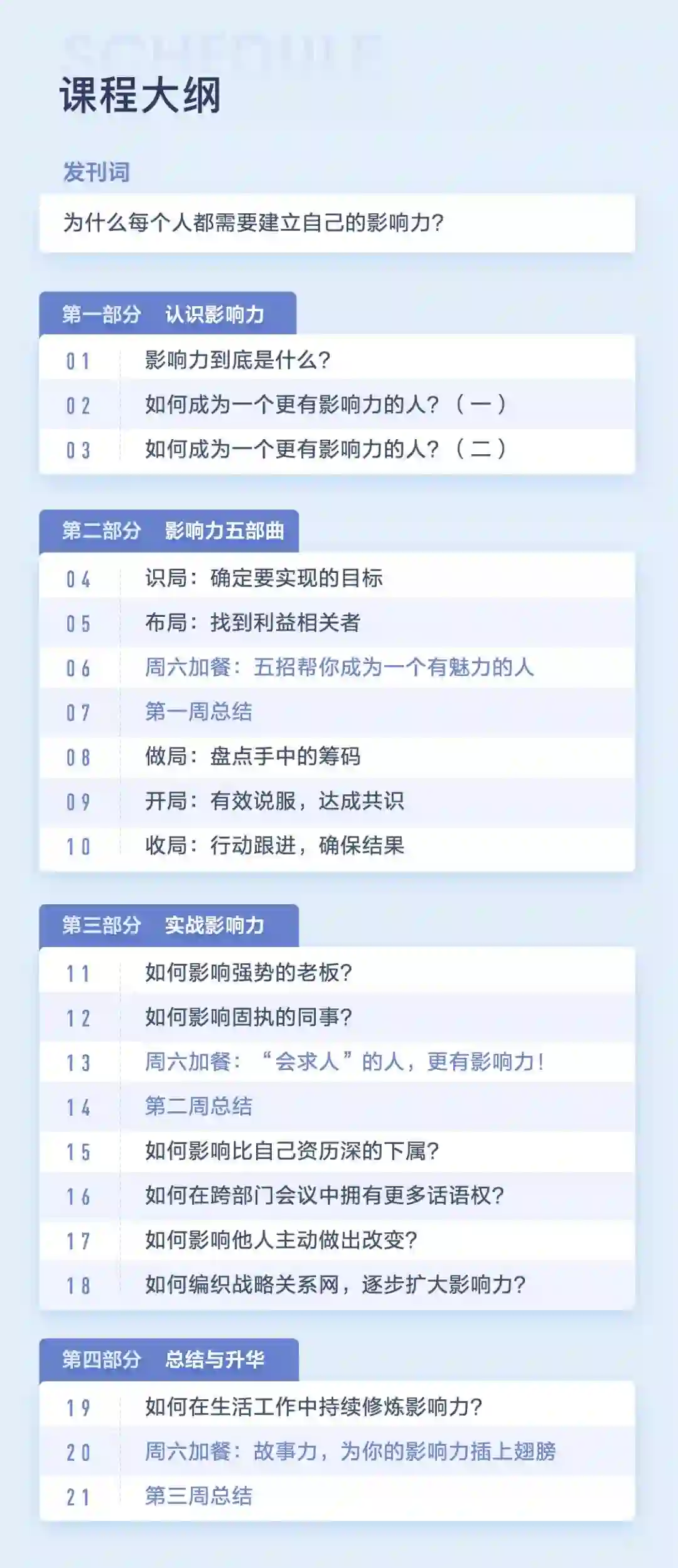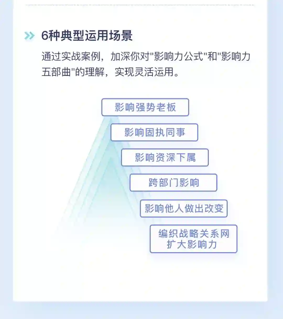 👉刚入职没多久的“职场新人”,开会的时候明明有很好的想法,却总是被忽略。好不容易有好的项目,别的部门也不配合,通过提升自己的影响力,让自己在团队和公司中有更多话语权,短短2个月,“小透明”变“隐形领袖”,就算是手里的活多到忙不过来,同事也更愿意优先完成她的需求。