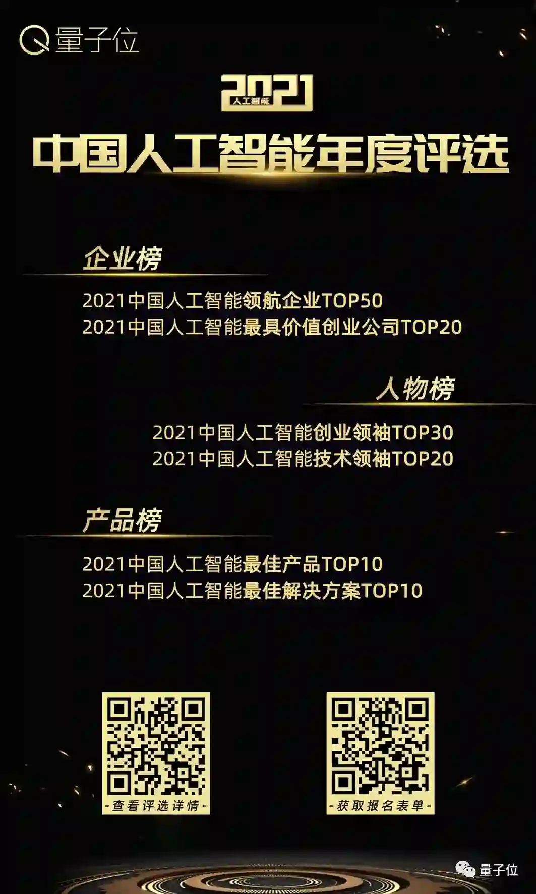「2021中国人工智能年度评选」报名中!本次评选将从公司、人物、产品三大维度寻找优秀的AI企业,欢迎大家扫码报名参与。评选将于12月揭晓,期待与百万从业者们,共同见证这些优秀企业的荣誉!