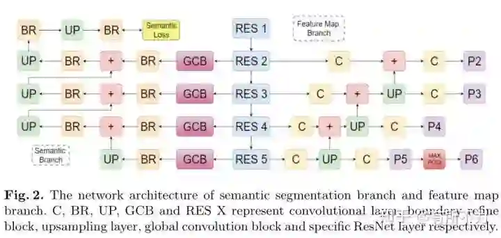 语义分割分支:GCN( global convolutional network)具有较高的效率和全局接收域,所以作者选择做我语义分割分支。GCB的卷积核采用的是1*k+K*1和k*1+1*k来代替k*k确保有足够的接受域,GCB被设计是为了减小参数。BR包含一个conv+relu+conv块,以及一个残差设计x=F(x)+x,BR旨在取代不可训练的条件随机场或其他后处理技术,简单来说,一切都是可以学习的。ResNet的参数不仅共享于语义分割分支还共享于特征图分支。