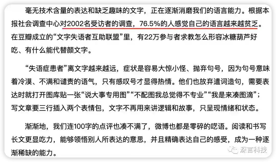 中青报调查表明76.5%的人感觉自己的语言变得贫乏