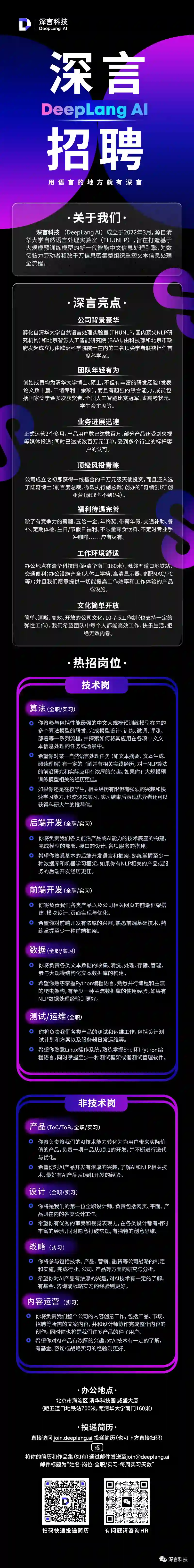 同时也请关注我们的公众号“深言科技”,我们将及时更新招聘需求。